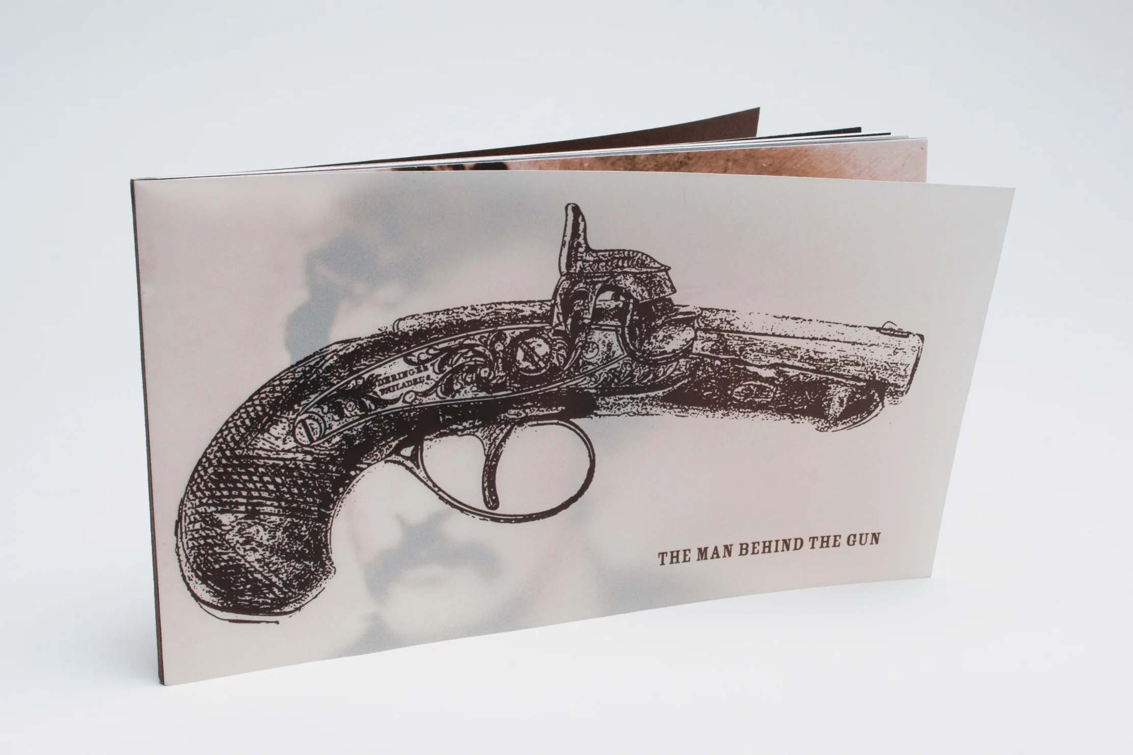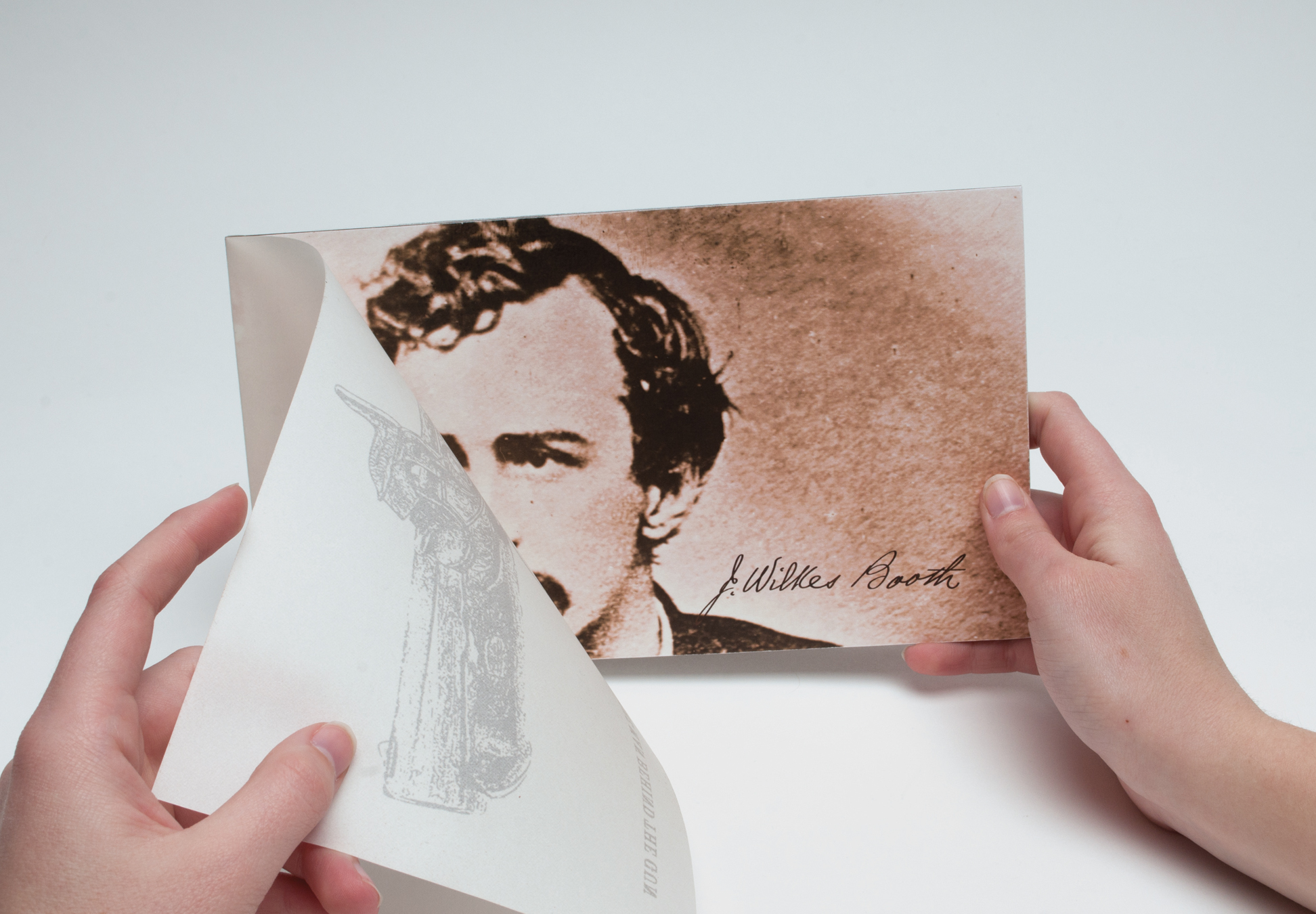 Book documenting the historical significance of John Wilkes Booth. Much of John's life revolved around secrecy, so paper engineering/reveals were incorporated to reflect this concept throughout the piece.
